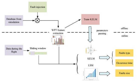 The AFTC method is composed of two parts: online and offline. The task of the offline part is to train KELM for obtaining an efficient classifier. First, simulation results of different states constitute the database. Then Wavelet Packet Transformation (WPT) is used to extract features to train the KELM. For the online part, a sliding window is adopted to realize real-time fault diagnosis. And the trained parameters are passed to classify faults. Finally, joint time-frequency analysis of the residual signal is employed to identify fault sizes.