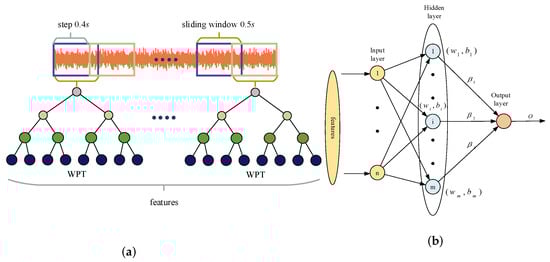 According to (2), ESO can be regarded as a reference model. Therefore, the residual between the observation of ESO and the output of NSHV contains the fault information. Efficient feature extraction is beneficial for fault diagnosis and evaluation. However, in the stage of reentry, NSHVs are affected by the severe environment. Considering maneuver and disturbance, the signal is characterized as a non-stationary signal. WPT is adopted to extract features, for wavelet transform’s unique advantages in processing non-stationary signals and its time-frequency feature processing ability. Sliding-window based feature extraction is adopted in view of real-time fault diagnosis. Figure 4a illustrates the structure of real-time fault identification.