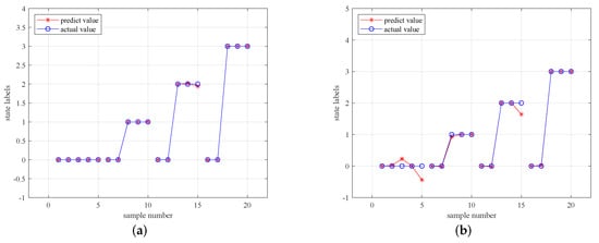 (a) Results of fault diagnosis using the method proposed; (b) results of fault diagnosis using the contrast method.