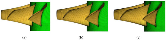Diagram of rotor grids with different grid sizes: (a) 1.18 million, (b) 1.92 million, (c) 3.11 million.