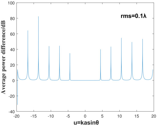 Taking the average radiated power of the antenna when in Figure 7 as an example, it can be seen that the range of the main beam width is . By combining Figure 7 and Figure 8, the difference in the average power radiation patterns obtained by the two calculation models are highly consistent within , which further confirms that the second-order Taylor expansion can be applied to analysis radiation characteristics of the distorted antenna.