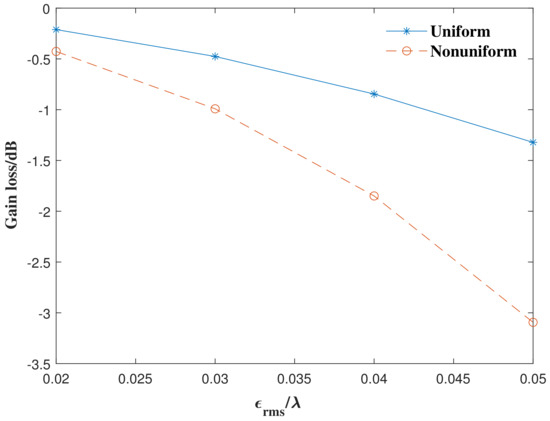 For the case of uniform error distribution, given the geometric size, operating frequency and error value of the antenna, the gain loss value can be obtained, and then the changes in the antenna detection capability and system delay error can be analyzed. However, the uniform distribution is only a special case, and the gain loss will be greater in the extreme operating conditions when the nonuniform distribution is applied.