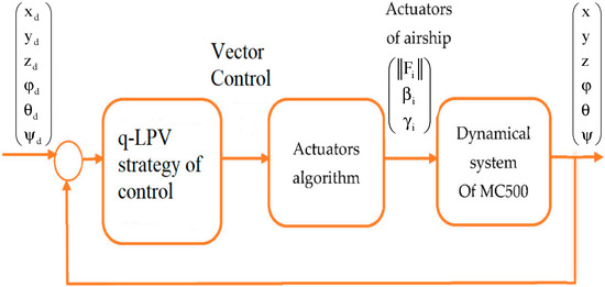 In order to compensate for the airship’s great sensitivity to gusts of wind, it is over-actuated. Moreover, in order to make these aircraft accessible and interesting for different countries and parties, even those which lack infrastructure, it is necessary to consider handling at altitude. This requires the development of a precise autopilot to stabilise the airship around a point of loading or unloading. Various techniques have been proposed for the control and stabilisation of aerial vehicles, see for example Yang et al. [7] where a backstepping method was used, or Moutinho [8] where a path-tracking gain-scheduling controller is designed and its performance and robustness evaluated in a simulation environment. Note that the dynamic models of aerial vehicles are often assumed to be linear, obtained from the linearization of the nonlinear system around a specific operating point. In the same way, linear models are extensively studied in the literature. Even though they solve many problems, the applicability of such developed approaches may fail to stabilise the system or lead to degraded performances when the system operates far from the operating point where the linear model is valid. It is, therefore, interesting in certain cases to take into account the nonlinear behaviours in the system. This allows the enhancing of the control performances and enlarges the domain of applicability of the controllers.
