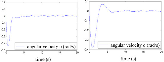 Angular velocities p and q in the presence of disturbance.