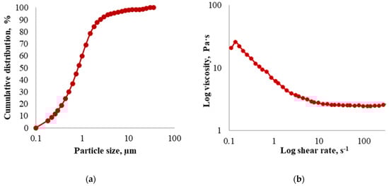 (a) Particle size distribution of the dispersant-treated powder; (b) Viscosity of the prepared slurry.