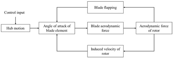 According to the induced velocity of the rotor and the flapping motion of the blade, the diagram of solving the rotor model is shown in Figure 3. The details of the procedure can be obtained in the References [18,19].