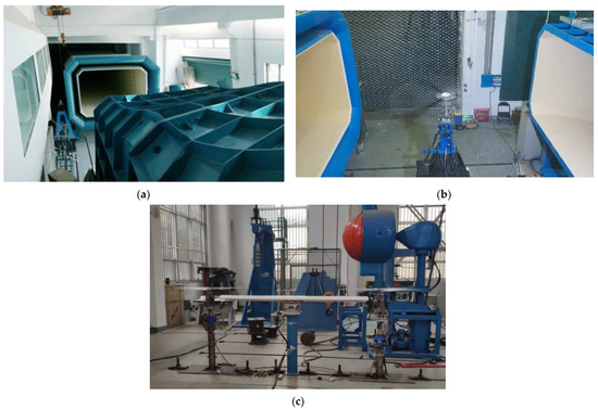 Experiment of the rotor thrust and the rotor–wing interaction. (a) The wind tunnel. (b) Experiment of the rotor thrust. (c) Experiment of the rotor–wing interaction.