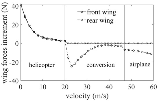 Vertical forces increment of front and rear wings caused by rotor–wing interaction.