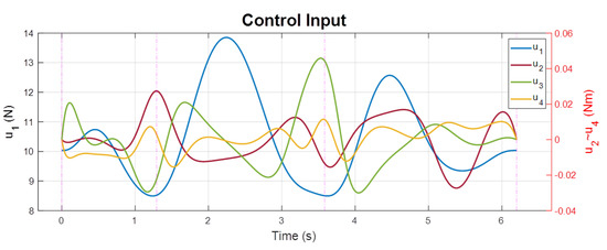 Figure 10 and Figure 11 show the control input and the rotor thrust along the trajectory. From the plot, we confirmed that the maximum rotor thrust used is N as expected.
