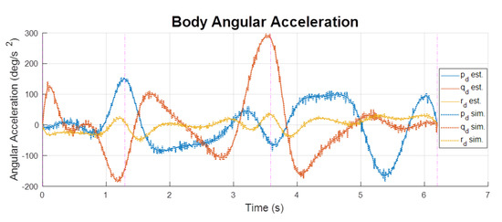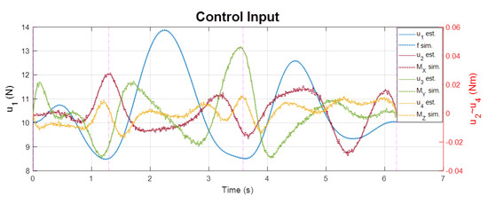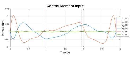 Next we determine the moment inputs from obtained angular velocity and acceleration by the rotational dynamics equation: