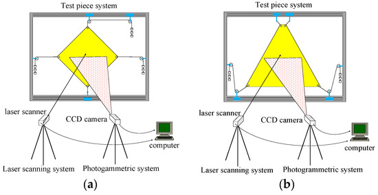 Schematic diagram of the wrinkling measurement system: (a) square membrane; and (b) trapezoidal membrane.