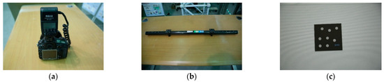 The photogrammetry system is a single-camera photogrammetry system. Based on digital close-up photogrammetry technology, the system can realize the high-precision measurement of the three-dimensional coordinates of objects pasted with landmarks. The photogrammetric system is mainly composed of a CCD camera, landmarks, a datum orientation ruler, and image processing software, as shown in Figure 10. Its technical index is shown in Table 2.