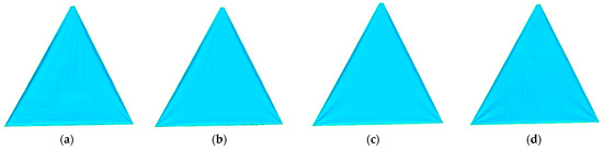 Experimental results of the wrinkling shape for the trapezoidal membrane ( unchanged): (a) ; (b) ; (c) ; and (d) .