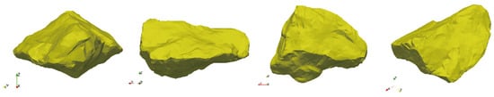 - Ferellec, J.F.; McDowell, G.R. A method to model realistic particle shape and inertia in DEM. Granul. Matter 2010, 12, 459–467. [Google Scholar] [CrossRef]