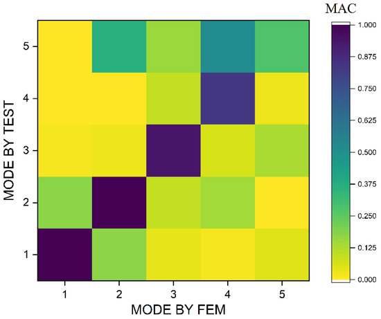 Modal Assurance Criteria (MAC) for the first five modes.