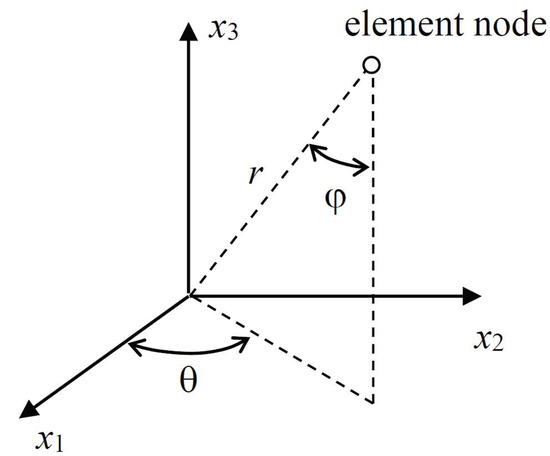 Spherical coordinates used for defining the positions of the element nodes.
