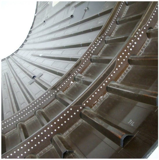 - Liu, B.; Fenga, L.; Nilsson, A. Sound transmission through curved aircraft panels with stringer and ring frame attachments. J. Sound Vib. 2007, 300, 949–973. [Google Scholar] [CrossRef]