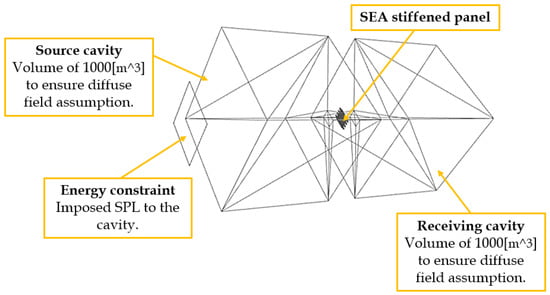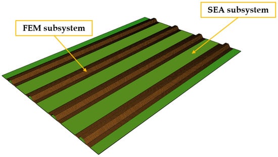 This causes an overestimation of the input power and consequently of the vibration levels. Therefore, there is a need for a further model (Figure 4), created using the same technique adopted for an FEM model, i.e., applying a load and an SIF to the SEA Ribbed subsystem.