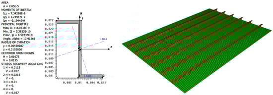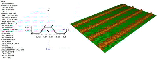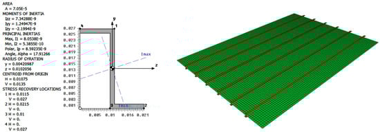 In order to better represent the real condition, a suitable increase of stringer inertial bending for the symmetrically modelled stringer is applied when the stringer is displaced on one side of the panel. The results obtained by increasing the stringer Inertial property on the basis on Equation (10) (Huygens–Steiner theorem) was validated throughout FEM analyses from the panel, comparing the first bending modes of the real stiffened panel against those of the analytical panel with the shifted symmetric stiffeners.
