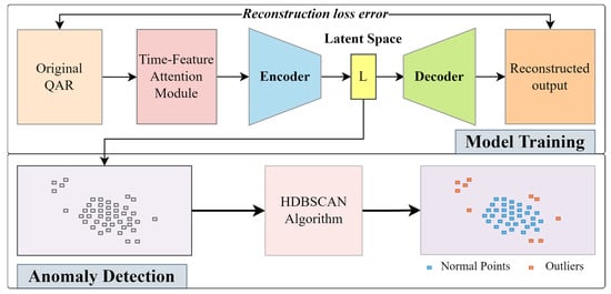 Previous studies have achieved good performance and have greatly contributed to our understanding of unsupervised DAD. However, a well-known drawback of neural networks is the lack of interpretability [28]. Moreover, for multi-feature time series data, the inter-time and inter-feature relationships are rarely considered. To avoid these shortcomings in flight anomaly detection, in this paper, we propose a time-feature attention mechanism to capture the inter-time and inter-feature relationships within QAR time series data, and develop an unsupervised deep hybrid model for flight anomaly detection, as shown in Figure 1. Deep hybrid models for anomaly detection use deep neural networks as feature extractors, and the features learned within the hidden representations of autoencoders are input to traditional anomaly detection algorithms [9]. Deep hybrid model in this study combines a time-feature attention-based convolutional AE (TFA-CAE) neural network model with a hierarchical density-based spatial clustering of applications with noise (HDBSCAN) [31] algorithm, where TFA-CAE is built and trained for the extraction of flight features while HDBSCAN employs the extracted flight features to detect anomalous flights. With the size of latent space is set 2, anomalous flights detected with the unsupervised deep hybrid model are more intuitively interpreted and comprehensible.