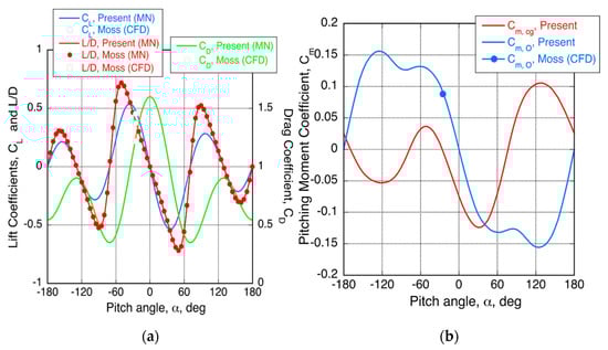 Then, the aerodynamic coefficients of the vehicle in the flowfield with the freestream velocity, , can be obtained by substituting Equation (18) into Equations (8)–(10);