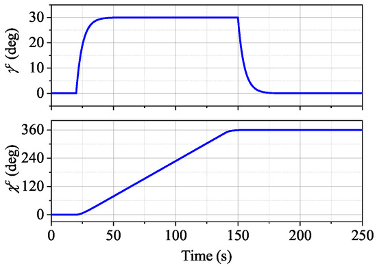 where , , are velocity components in the x, y, z directions; is the total velocity, is the ground tracking angle, is the flight path angle, represent , and represent . Define , and the dynamics of are [32]: