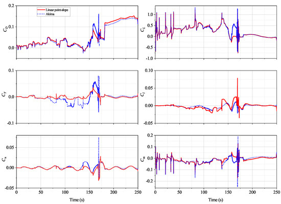 The aircraft model noted before is constructed using the spline technique based on the discrete aerodynamic data provided in [1]. Considering the controller’s efficiency, only linear interpolation is used in the controller design. Of course, the aerodynamic coefficients obtained through linear interpolation cannot be very accurate. In the following sections, we will prove that these errors will not affect the performance of the controller we propose.
