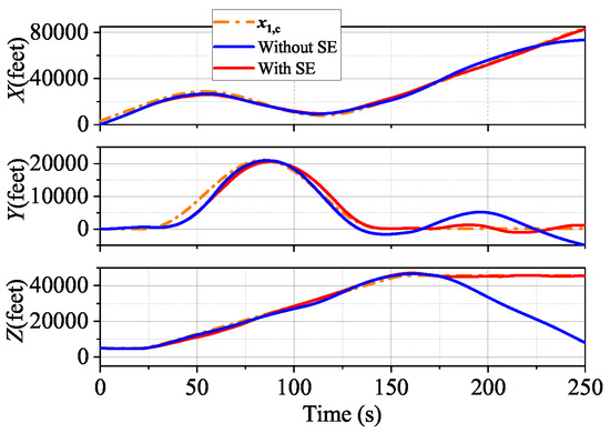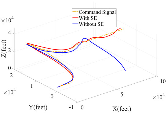 From Figure 15 and Figure 16, we know that, in the absence of SE, the trajectory tracking error does not converge, and the aircraft ends up losing control.