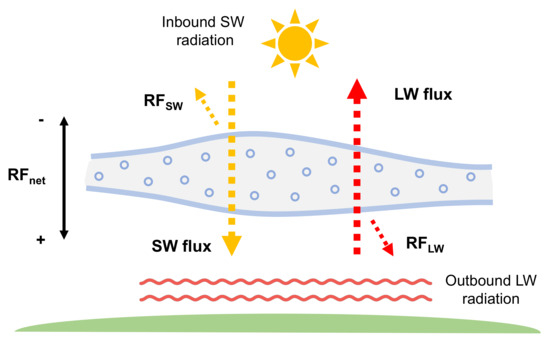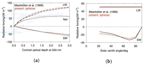 - Meerkötter, R.; Schumann, U.; Doelling, D.R.; Minnis, P.; Nakajima, T.; Tsushima, Y. Radiative forcing by contrails. Ann. Geophys. 1999, 17, 1080–1094. [Google Scholar] [CrossRef]