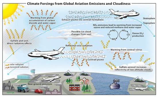 - Lee, D.S.; Fahey, D.W.; Forster, P.M.; Newton, P.J.; Wit, R.C.; Lim, L.L.; Owen, B.; Sausen, R. Aviation and global climate change in the 21st century. Atmos. Environ. 2009, 43, 3520–3537. [Google Scholar] [CrossRef] [PubMed]