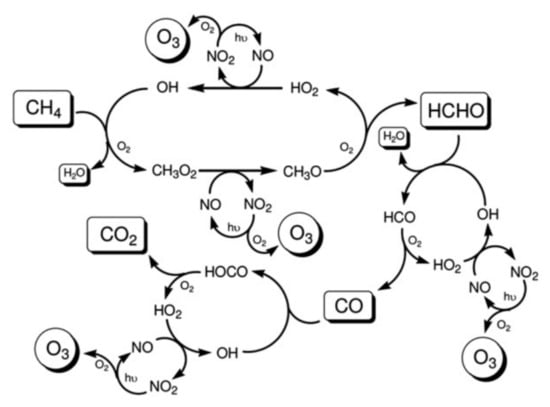 - Jenkin, M.E.; Clemitshaw, K.C. Ozone and other secondary photochemical pollutants: Chemical processes governing their formation in the planetary boundary layer. Atmos. Environ. 2000, 34, 2499–2527. [Google Scholar] [CrossRef]