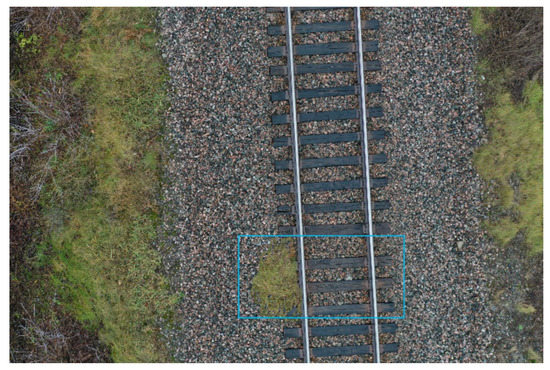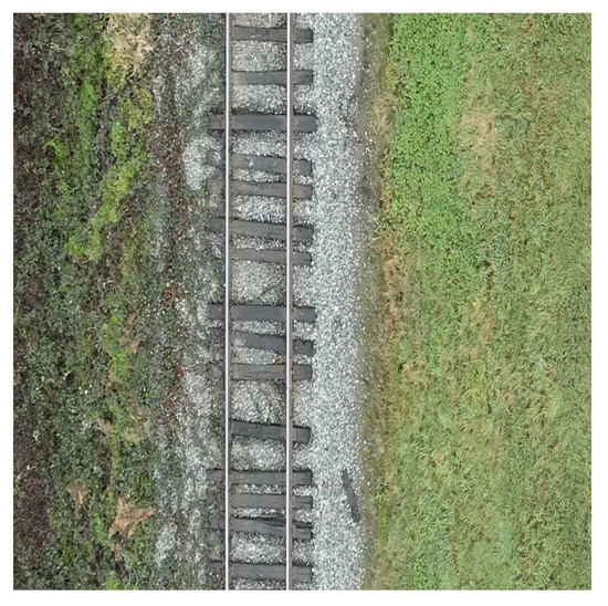 - Vegetation: Each image was closely reviewed to check for vegetation near the track. If it was present at a distance from the track (<3 m), it was annotated accordingly. An example is shown in Figure 6.