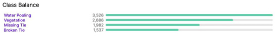 - The model achieved more than 80% accuracy in categories such as vegetation, missing ties, and water pooling.