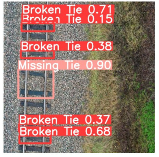 - Broken Tie: If there was a crack at least 50% of the length of the tie (calculated horizontally), the tie was annotated as a broken one. An example is shown in Figure 8.
