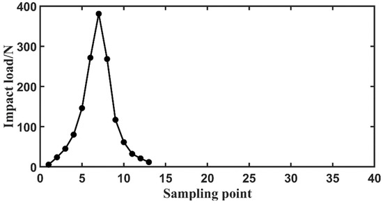 where is the constant. Without damping, the relationship between the amplitude corresponding to the characteristic frequency and the approximate impulse of the impact load can be expressed as . Substituting the above relationship into Equation (6), the relationship between the approximate impulse and the spatial position information, the maximum value of the structural response and the structural characteristic parameters is obtained, as shown in Equation (7):