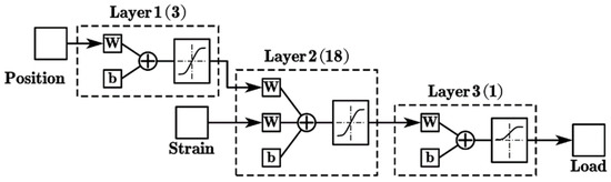 Establish a three-layer network structure, as shown in Figure 17. The first layer preprocesses the position information of the measuring point. The second layer processes the output signal of the first layer and the response signal and then outputs the integrated information. The third layer integrates the output signal of the second layer to complete the identification of the corresponding load.