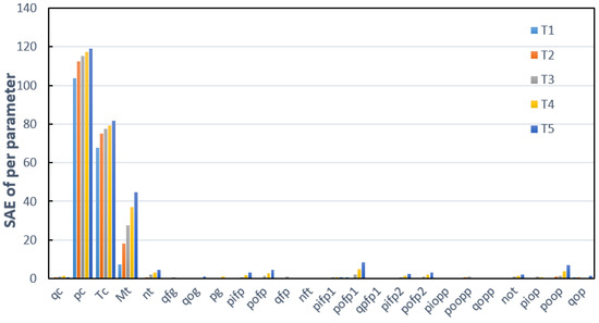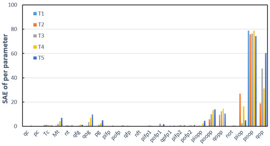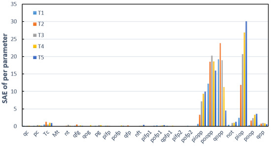 As shown in Figure 8, for test 11, the SAEs of pc, Tc, and mt increase rapidly and are much larger than that of other parameters. Assuming that the fault of test 11 is a combustion chamber fault, the SAE of pc and Tc first increases when the combustion chamber fails. Then, the failure affected the main turbine directly connected to it, causing the SAE of mt to increase. This process is consistent with the assumption. Therefore, the diagnosis result of test 11 is a combustion chamber fault, which is consistent with the injection fault.