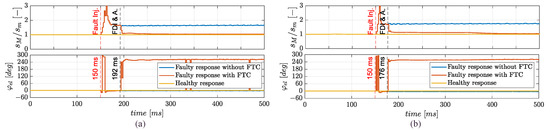 In this converter topology, a couple of power switches are added, as stand-by devices, to the conventional three-leg bridge, enabling the control of the central point of the “star” connection (often Y-connection) of the motor. Nevertheless, to benefit from their fault-tolerance capability, these devices must be promptly reconfigured when a fault occurs, and extremely fast Fault-Detection and Isolation (FDI) algorithms must be developed. Especially for PMSMs operating at high speeds (such as the ones used for aircraft propellers), phase faults can generate abnormal torque ripples and the related failure transients can potentially cause unsafe conditions [10,11].
