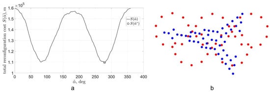 and represent the Euclidean distance between the current position of the i-th spacecraft and the j-th slot in the new configuration the formation should converge to. Given the cost matrix , we can formulate and solve the assignment problem [24] which assigns each satellite to its position in the new configuration such that the sum of distances that all spacecraft travel during the reconfiguration is minimized. Let us note that the solution to this problem not only determines the spacecraft positions in the new configuration, but also fixes the value of the phase parameter as