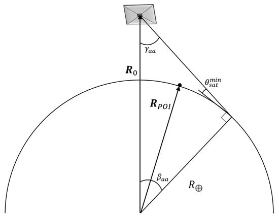 where , is the inclination of the terminator plane. The maximum possible distance between formation satellite and POI can be found using the cosine law as follows