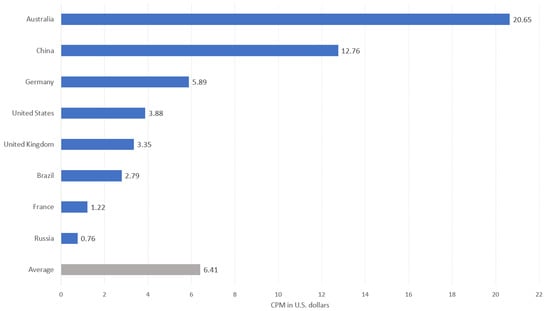 - Guttmann, A. Year-on-Year Change in CPM of Standard Billboard Advertising Worldwid. 2018. Available online: https://www.statista.com/statistics/868305/change-cost-per-mille-billboard-advertising (accessed on 29 June 2022).