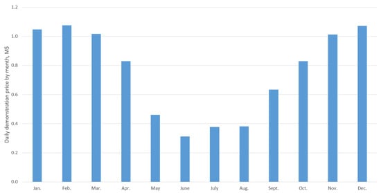 Figure 20 shows the distribution of the daily price of image demonstrations by month. It can be seen that the space advertising is most profitable in winter. Therefore, the image demonstration mission in December is considered that corresponds to the initial condition presented in Table 3.