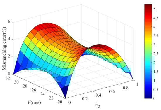 The calculation results are shown in Figure 6. As can be seen, within the range of scheduling parameter variation, the average value of the mismatching error is about 2.9%, and the maximum value is less than 5%, which to some extent demonstrates the accuracy of the polytopic model.