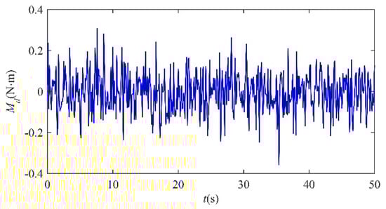 As we know, unpredictable atmosphere disturbance and unmodeled dynamics exist in nearly all aircraft systems, and it is almost impossible to describe them precisely using mathematical models. Therefore, the gain scheduled controller needs to be sufficiently robust against the dynamic effects. In the following described simulations, the Gaussian white noise shown in Figure 10 is added in the pitch moment as an interference signal to verify the robustness. Figure 11 shows the close-loop dynamic responses of the transition process in the two situations under the white noise condition. The flight velocity, V, and altitude, h, present small amplitude fluctuations under the effect of disturbance moment, while the morphing proceeds as usual without any trend of divergence. With the successive adjustments of sweep control inputs λ1 and λ2, the difference values of V and h between the equilibrium states are less than 0.2 m/s and 1.5 m, respectively. The simulation results demonstrate that the designed gain scheduled transition controller has strong robustness for random disturbance.
