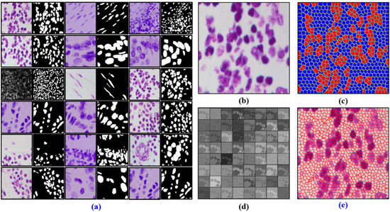 - Caicedo, J.C.; Goodman, A.; Karhohs, K.W.; Cimini, B.A.; Ackerman, J.; Haghighi, M.; Heng, C.K.; Becker, T.; Doan, M.; McQuin, C.; et al. Nucleus segmentation across imaging experiments: The 2018 Data Science Bowl. Nat. Methods 2019, 16, 1247–1253. [Google Scholar] [CrossRef]
