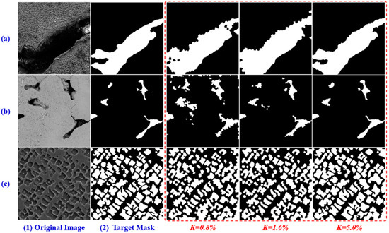(2) Compared with the Unet model, the proposed method has relatively higher segmentation accuracy as K = 0.8%, and the accuracy gradually improves with the increase of K value;