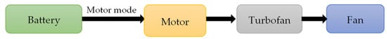 All electric (shown in Figure 6). An all-electric propulsion system is widely used on small UAVs due to its advantages over other types. One advantage is having low noise. Electric motors make less noise when operating than fuel-powered engines. In addition, the all-electric propulsion system allows for a distributed use of smaller, quieter engines. Efficiency is also one of its advantages. The electric drive of the propulsion system can have more than 90% efficiency in comparison with 55% for large turbofans and 35% for small turbofans. Another advantage of all-electric propulsion systems is scalability. Precisely, the performance is the same when using one or two large motors or many small motors in electric propulsion systems. Therefore, in this paper, the research study focuses mainly on all-electric architecture using small UAVs. However, the energy problem of all-electric propulsion systems is the biggest challenge in designing UAVs [33].
