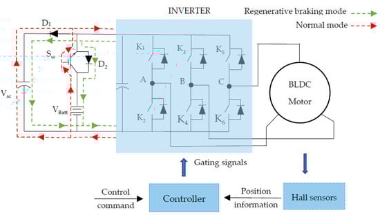 From Equations (1) and (2), it can be seen that the energy consumption of the UAV depends greatly on the angular velocity of the motors. It is very important to control the current of the electric motors or the electric drive of the system. The efficiency of these electric drives is affected by the level of the current. Meanwhile, energy conversion is affected by and the wind energy through the cross section of the propeller. Therefore, in the following sections, we focus on discussing the concept of the electric drives of UAVs according to the technology of the energy storage elements, such as supercapacitors, batteries, and fuel cells.
