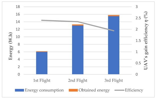 Energy consumption, energy conversion, and gain efficiency of the UAV.