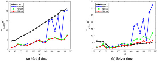 Note that the transpose operation here is because the decision variable is a combination of seven variables, and, after discretization, it is a matrix of , as stated in Equation (46).
